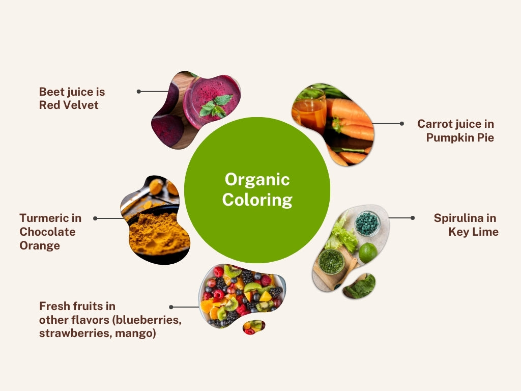 Our cakes are beautifully colored using all-natural colorants like beetroot powder, spirulina, and turmeric. These ingredients not only enhance the appearance of our cakes but also add a nutritional boost. By avoiding artificial dyes, we create stunning, vibrantly colored cakes that are as good for your body as they are for your eyes.
